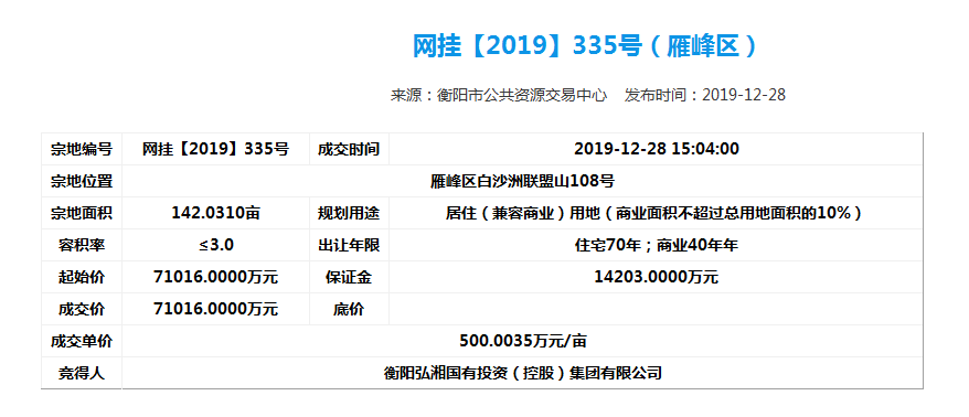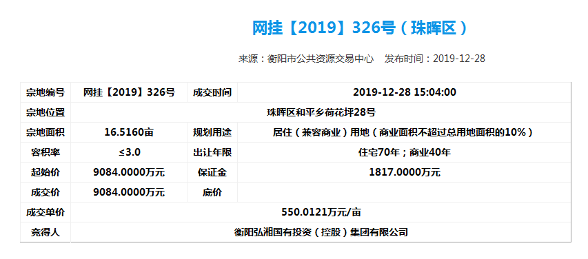 為了進(jìn)一步做好市場化運(yùn)行,弘湘國投以市場經(jīng)營為主體,向資本市場進(jìn)軍,進(jìn)一步做實(shí)做強(qiáng)國有資產(chǎn),增強(qiáng)自身活力。2019年12月28日下午,弘湘國投在市公共資源交易中心網(wǎng)站成功摘牌6宗共計(jì)523畝改制企業(yè)土地,摘牌總價(jià)超24億元,并于當(dāng)日簽訂了《國有建設(shè)用地使用權(quán)公開出讓成交確認(rèn)書》。2019年12月31日,弘湘國投與市自然資源和規(guī)劃局正式簽訂了《國有建設(shè)用地使用權(quán)出讓合同》。