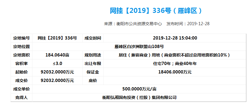近日,衡陽弘湘國有投資(控股)集團(tuán)有限公司(以下簡稱“弘湘國投”)在市公共資源交易中心網(wǎng)站成功摘牌6宗共計(jì)523畝改制企業(yè)土地,摘牌總價(jià)超24億元。此舉標(biāo)志著弘湘國投邁出了土地整改、做實(shí)資產(chǎn)的又一實(shí)質(zhì)性步伐。