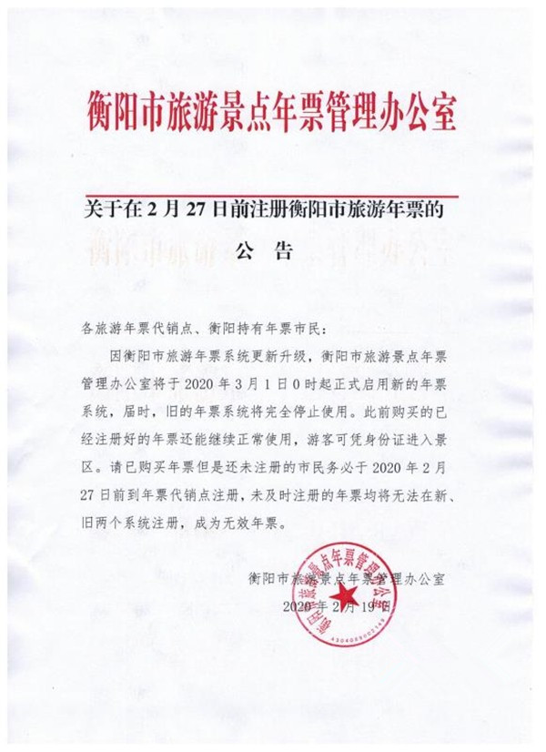 日前,衡陽(yáng)市文旅廣體局發(fā)布消息稱,因衡陽(yáng)市旅游年票系統(tǒng)更新升級(jí),衡陽(yáng)市旅游景點(diǎn)年票管理辦公室將于2020年3月1日0時(shí)起正式啟用新的年票系統(tǒng)。