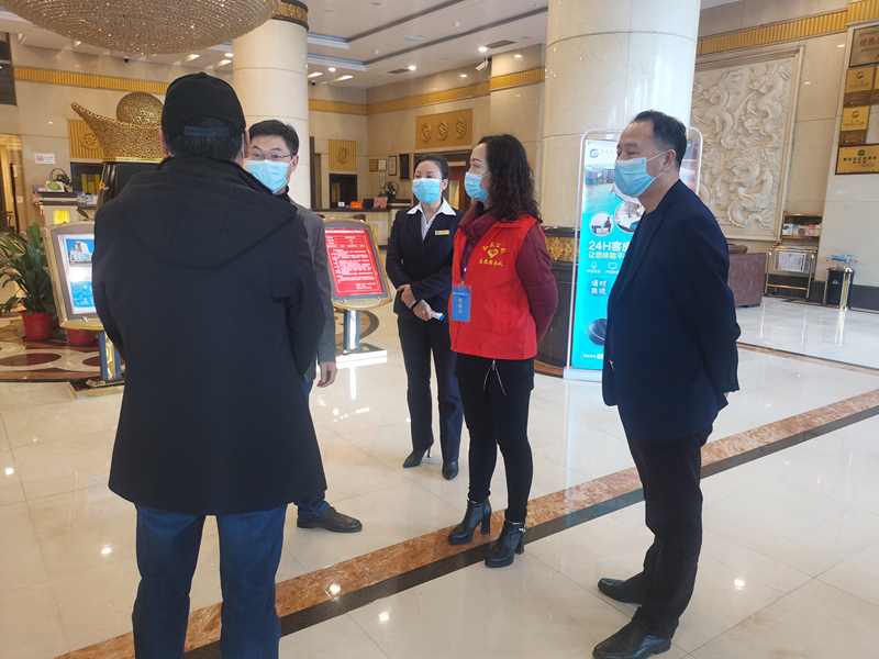 2月14日,弘湘國投工會主席陳新驥和商業(yè)大廈負責(zé)人蔣臘生一同前往商業(yè)大廈租賃單位神龍大酒店檢查指導(dǎo)疫情防控工作,了解酒店疫情防控措施、復(fù)工人員健康狀況以及企業(yè)防疫所存在困難,幫助酒店復(fù)工復(fù)產(chǎn)。