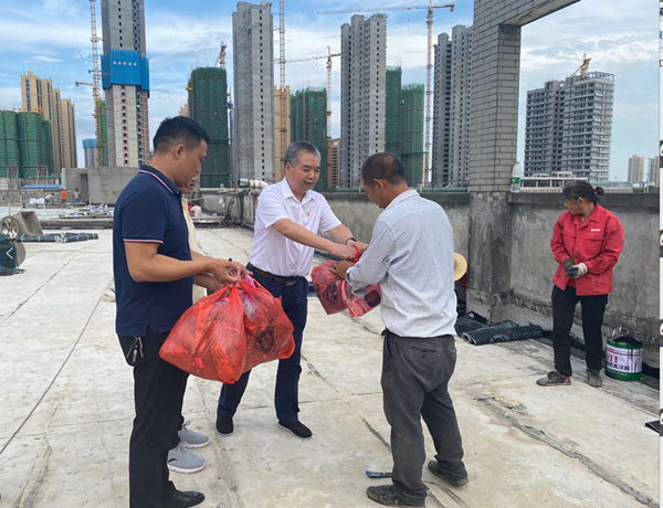 根據(jù)方案分組,公司黨委副書(shū)記、總經(jīng)理張雨民和黨委成員、監(jiān)事會(huì)主席李育和分別帶隊(duì)走訪(fǎng)慰問(wèn)了我公司業(yè)主項(xiàng)目,威馬新能源汽車(chē)公司、眼鏡小鎮(zhèn)項(xiàng)目、棚改項(xiàng)目等,在項(xiàng)目一線(xiàn),領(lǐng)導(dǎo)調(diào)度項(xiàng)目進(jìn)度,并送上“清涼包”,包中有藿香正氣水、板藍(lán)根顆粒、萬(wàn)金油、人丹、涼茶草中藥包等防暑藥品,領(lǐng)導(dǎo)們督促項(xiàng)目建設(shè)方,要切實(shí)落實(shí)好防暑降溫措施,為工友們創(chuàng)造相對(duì)舒適的工作環(huán)境,希望大家將項(xiàng)目建設(shè)得又好又快,將弘湘項(xiàng)目打造成全市模范項(xiàng)目。