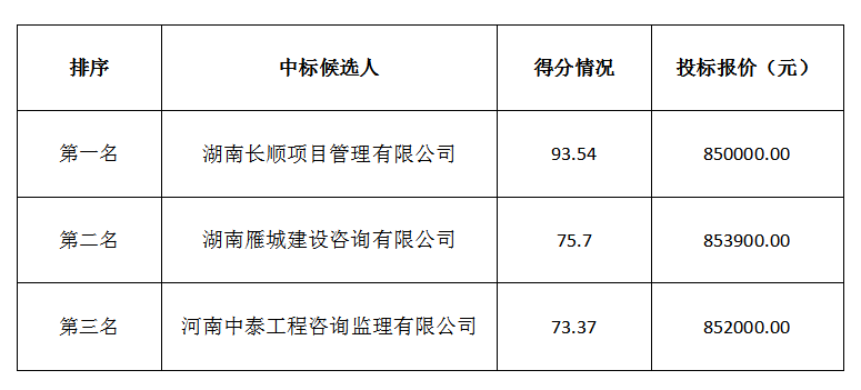 公示期2023年1月28日至2023年1月30日,公示期滿對以上中標候選人若無異議,招標人將確定以上中標候選人中的第一名為該項目最終中標人。