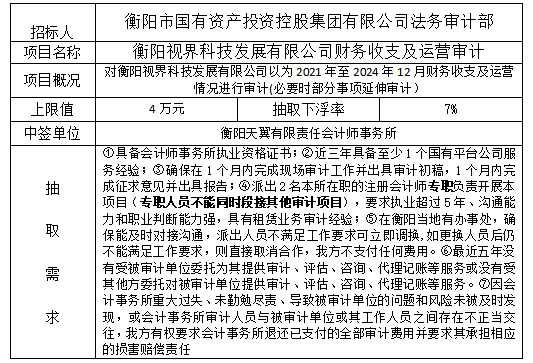 衡陽視界科技發(fā)展有限公司財務(wù)收支及運(yùn)營審計(jì)項(xiàng)目抽取結(jié)果公示