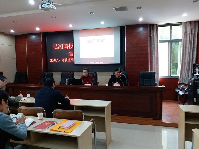 為進一步全面準確領(lǐng)會十九大精神實質(zhì)和豐富內(nèi)涵,按照市委、市國資委的部署安排,11月28日下午,弘湘國投舉行黨的十九大精神宣講報告會,邀請市委宣講團成員、市社科聯(lián)黨組書記、主席王柏新作宣講報告。集團公司黨組副書記、工會主席曾康主持會議,黨組其他成員、集團公司各部室、各子公司全體黨員,共計70多人參會聆聽了報告會。