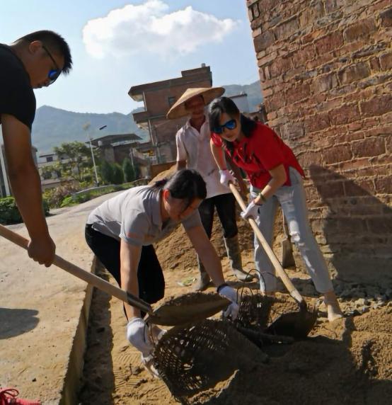 勞動的人群中有幾個(gè)熟悉的身影特別打眼,頭戴一頂草帽的董事長王建華,全然沒有城里人對農(nóng)事的陌生,只見他熟練地挑起一擔(dān)卵石,扁擔(dān)都被這一挑沉重的卵石壓彎了腰,但他健步如飛、體態(tài)輕盈;身穿紅色T恤衫的李晶副總,全然不顧已經(jīng)疼了幾個(gè)月的手臂,抬起一筐河沙就走;李詠琴副總也不示弱,將剛剛還暈車的不適拋到腦后,毫不顧忌炎炎烈日對肌膚的傷害,在烈日下?lián)]鏟、運(yùn)砂......